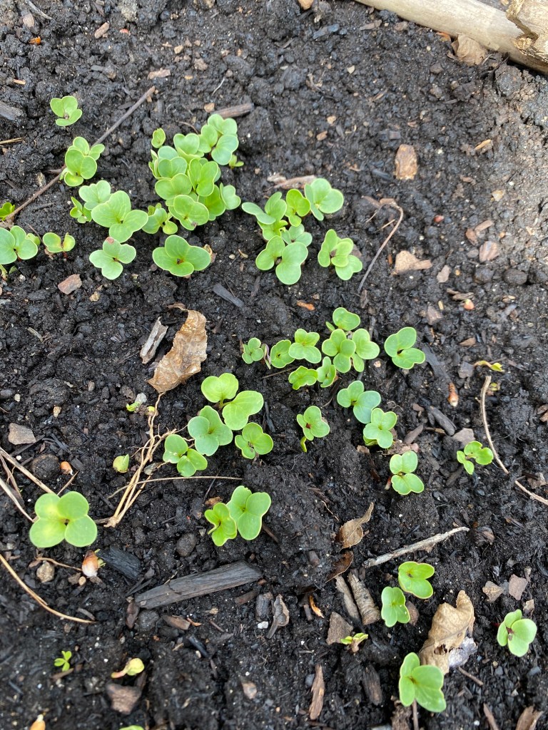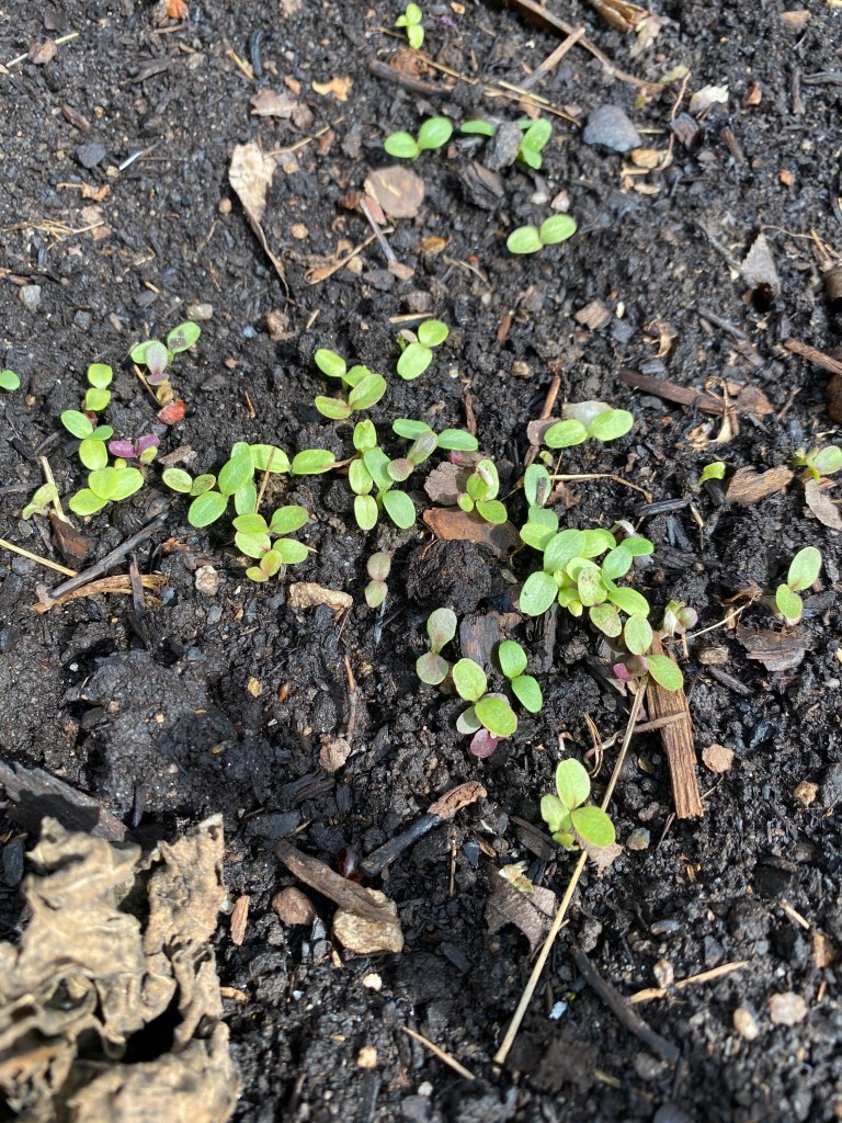 So whats going on in the garden this week? Things are starting to happen at my home garden. A lot of my potted tea herbs are coming in, and we planted some early spring plants that are starting to sprout as well. Only the peas have decided to not show themselves yet.